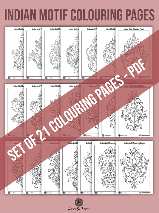 Indian Motif Colouring & Tracing Pages - Set of 42 pages - 2 PDF