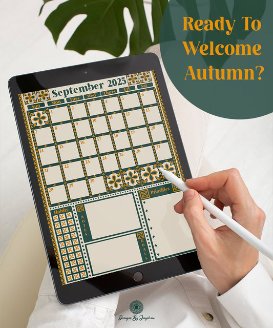 September Theme Monthly Planner – Handmade Indian Motif Printable & Instant Download, Digital Planner