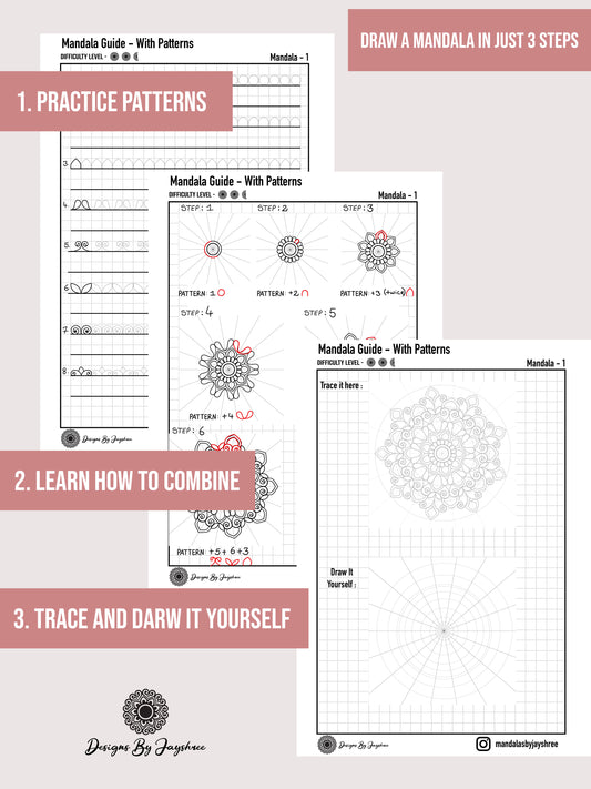Step By Step - Mini Mandala Tracing Sheets - Beginner Friendly