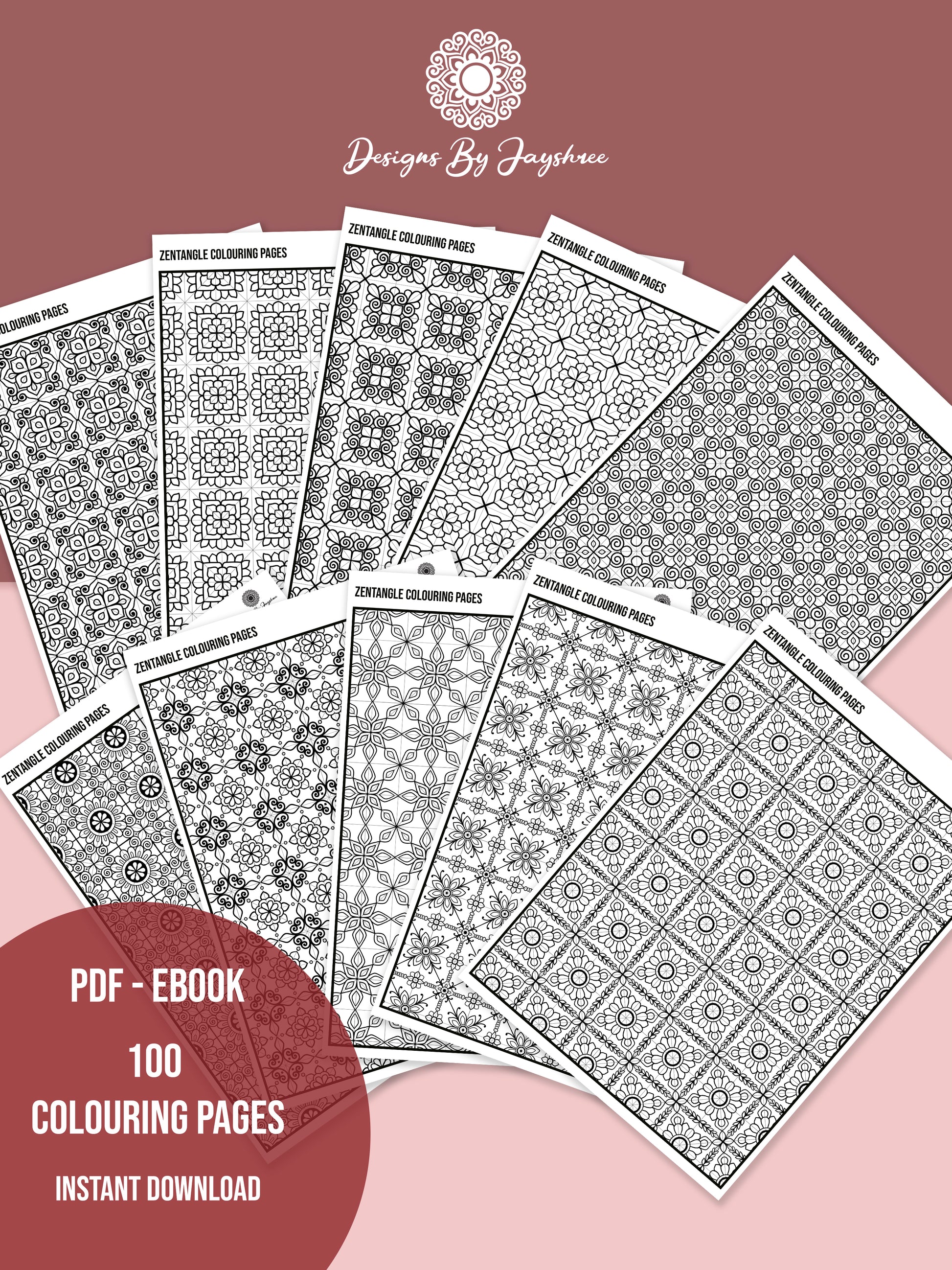 🌸PDF templates of 100 Zentangle mandala Pages for colouring are available for instant digital download.