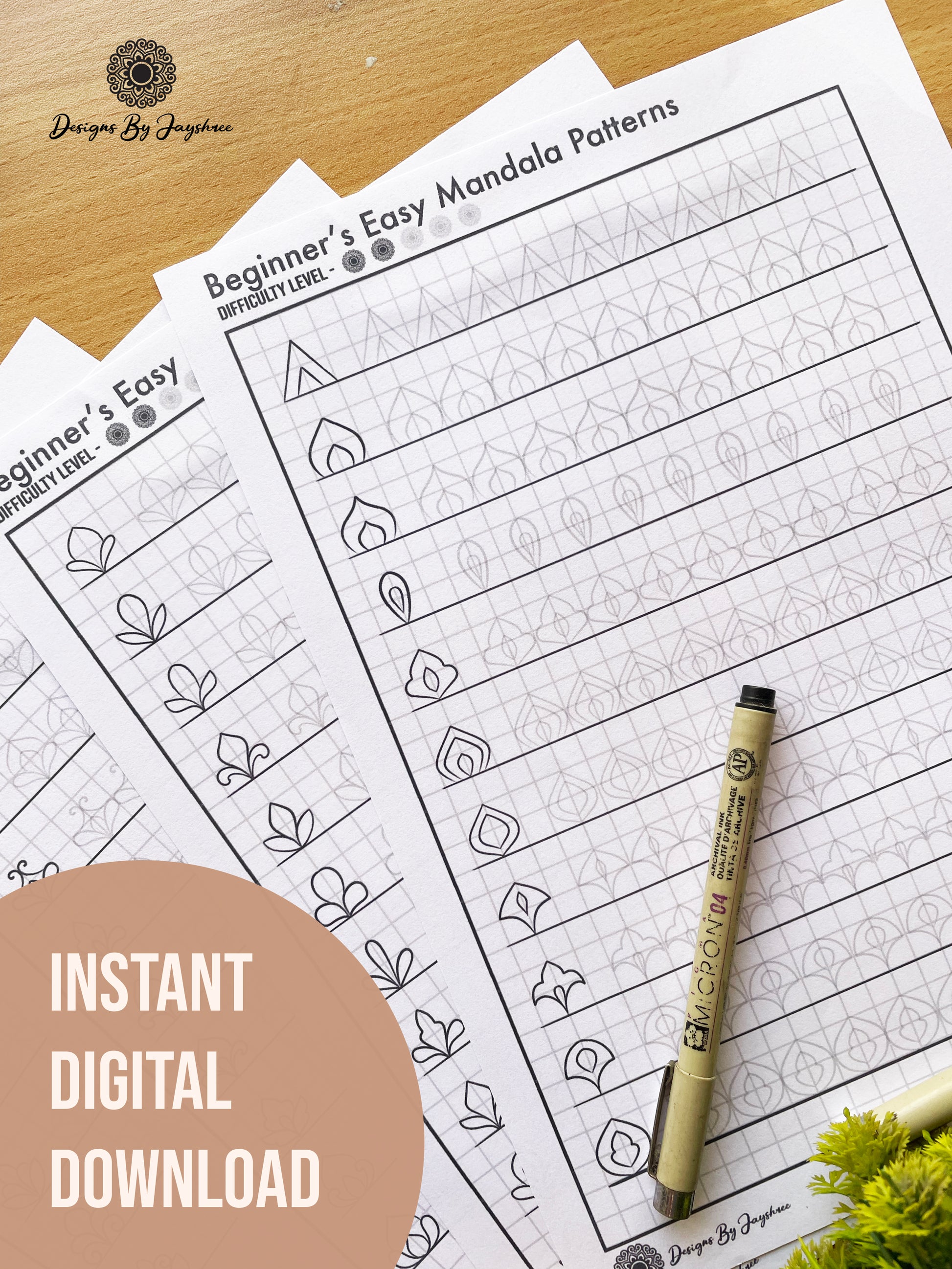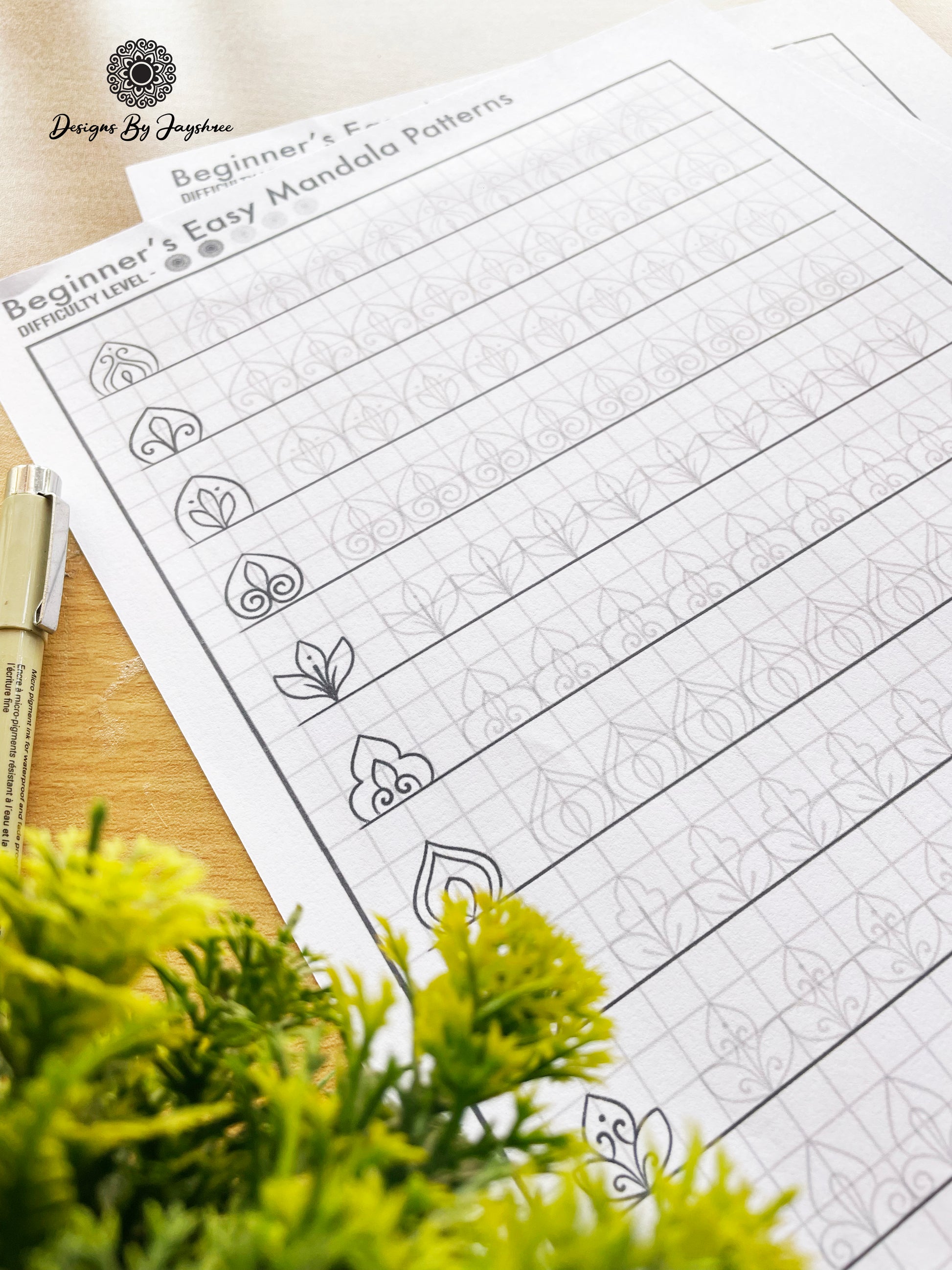 🌼1 PDF templates - Each contains TOTAL 5 mandala pattern sheets for outline and practice with 55 beginner friendly mandala patterns are available for instant digital download