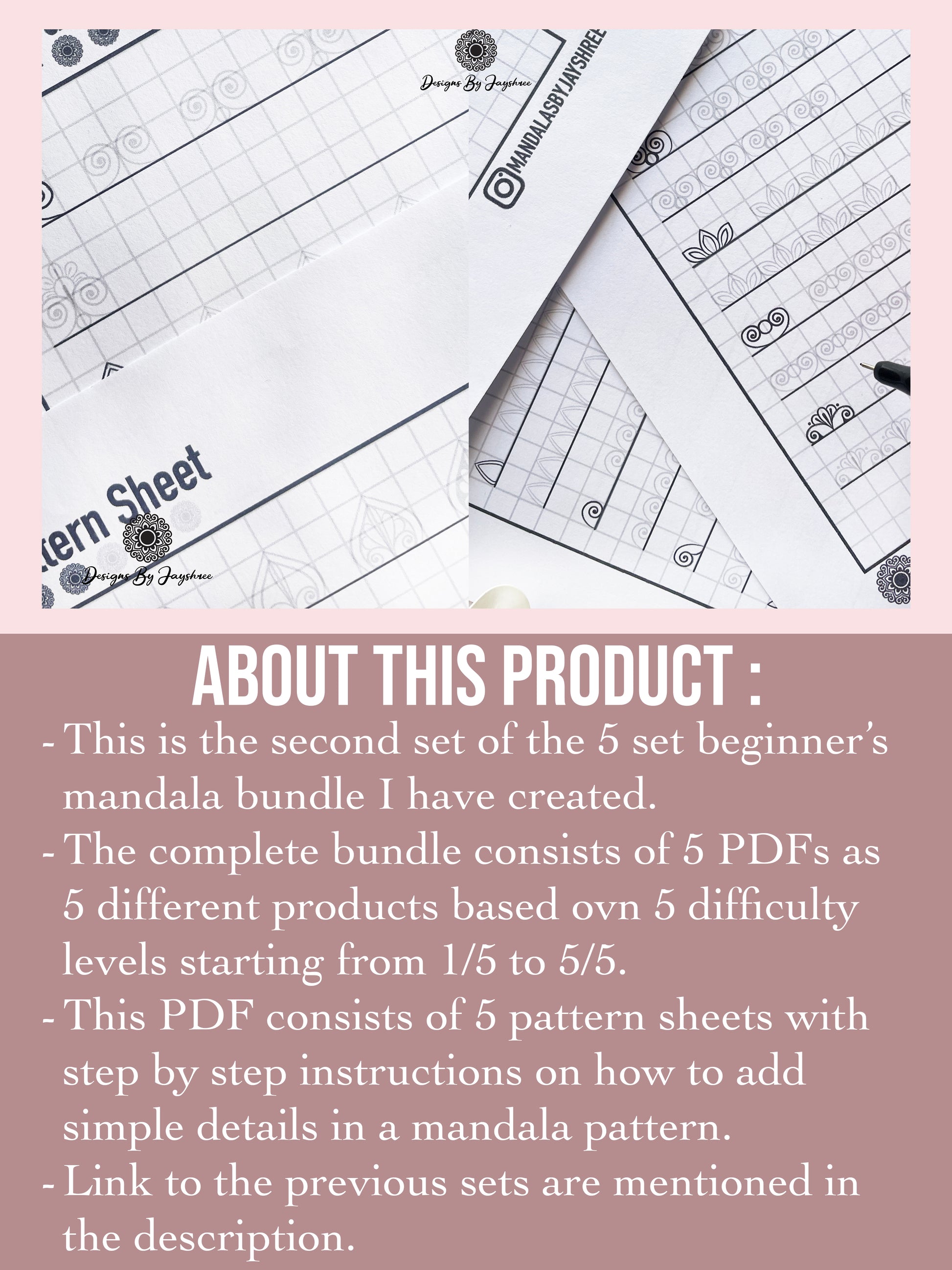 Contains TOTAL 5 STEP BY STEP mandala pattern sheets for outline and practice with beginner friendly mandala patterns are available for instant digital download🌸