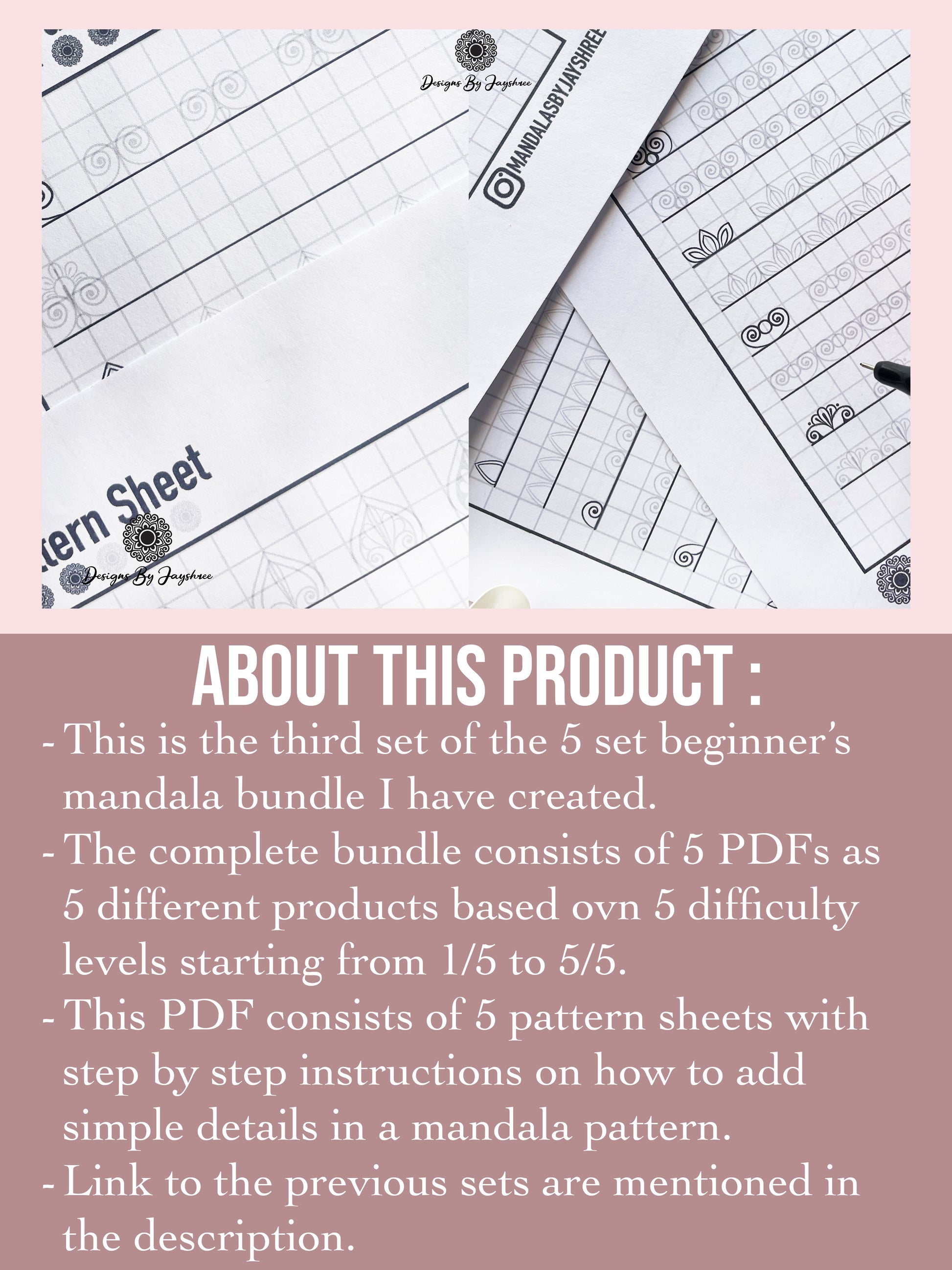 🌸 Link to the 1st PDF of this set - https://designsbyjayshree.com/products/beginners-mandala-pattern-sheets-set-1-of-5-mandala-tracing-templates